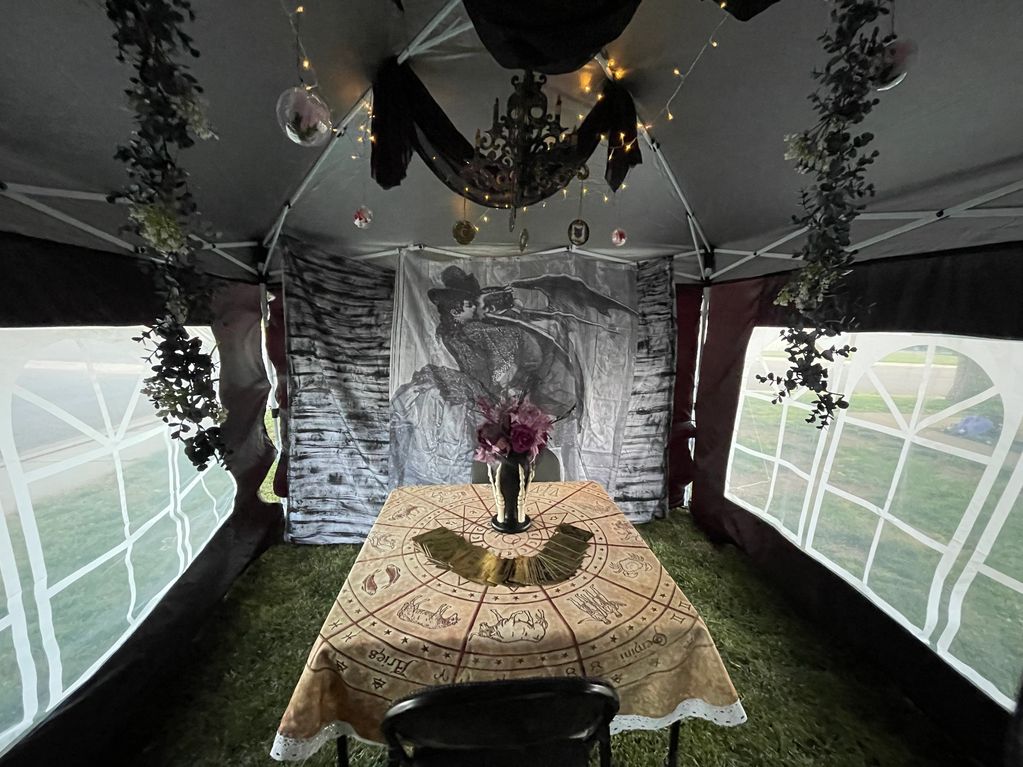 Perfect for more intimate events or smaller group settings, this 1.5-hour Tarot reading experience includes everything offered in the full 3-hour package—complete with a fully decorated 10x10 themed tent and personalized psychic readings.